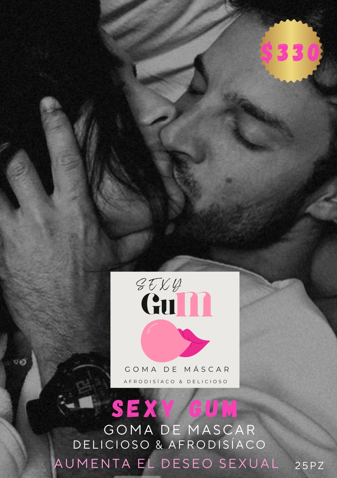 Goma de mascar deliciosa y afrodisíaca que eleva el deseo, humedece tus besos y despierta los sentidos.