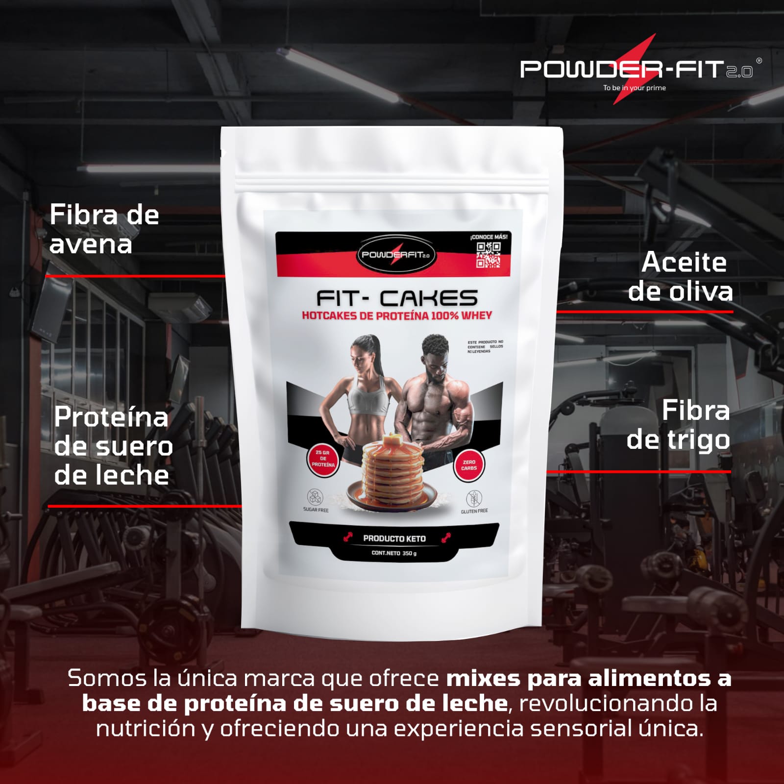 FITCAKE® Te aporta 25 g de Proteína y no contiene azucares ni carbohidratos.