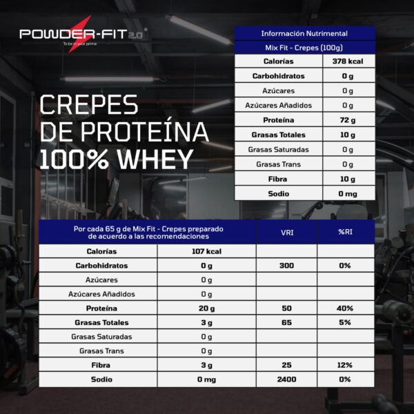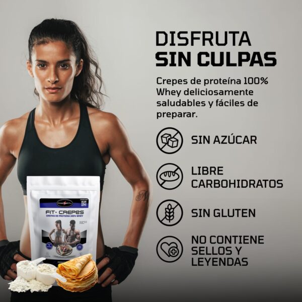FIT-CREPE® Te aporta 20 g de Proteína y no contiene azucares ni carbohidratos.