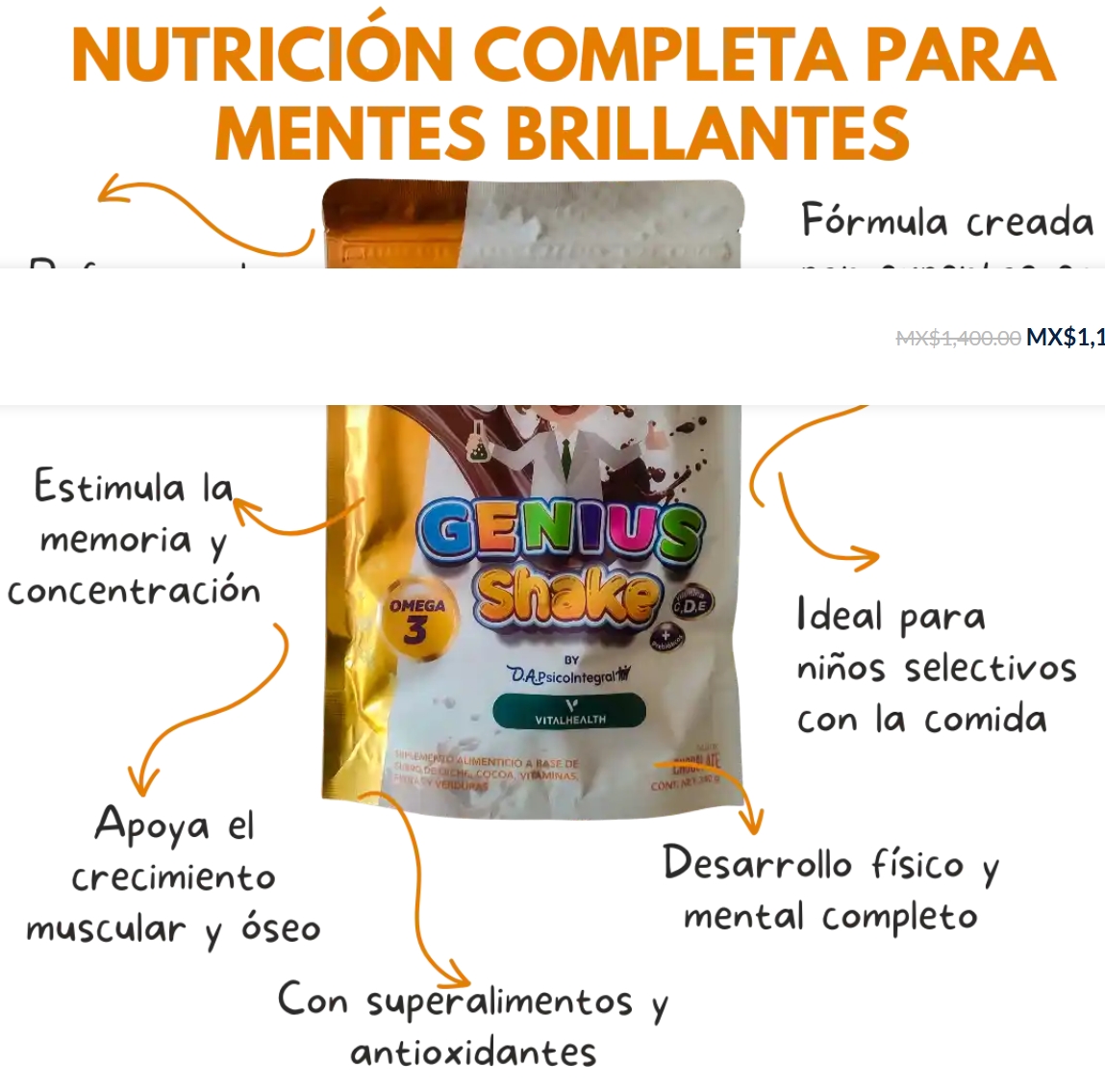 Con Genius Shake, cada porción es un paso hacia el desarrollo óptimo, saludable y feliz de tus hijos.