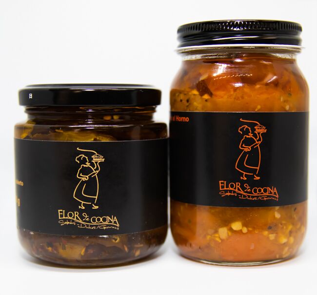 berenjenas al escabeche 200 gramos  y tomates cherrys confitados al horno 230 gramos