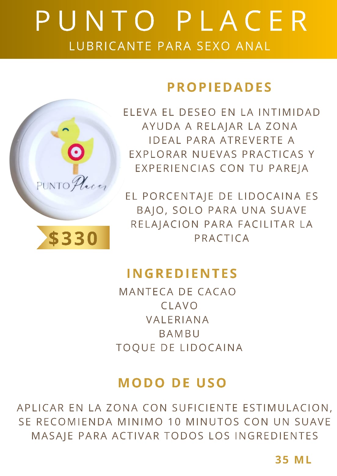 Contiene manteca de cacao, clavo, valeriana, bambú y un toque ligero de lidocaína para relajar suavemente la zona. Ideal para quienes desean explorar nuevas sensaciones con confianza y comodidad.