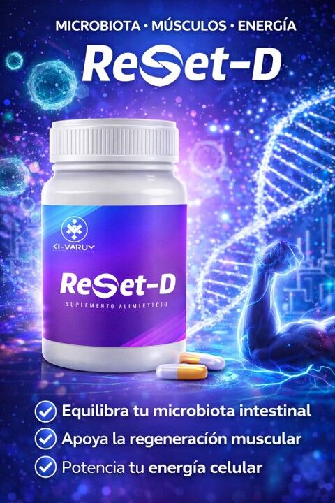 ReSet-D es un suplemento funcional de nueva generación, formulado para restablecer el equilibrio de la microbiota intestinal, acelerar la recuperación muscular y optimizar la producción de energía celular. Su acción integral actúa desde el eje intestino-músculo-mitocondria, brindando soporte vital a los sistemas que más impacto tienen en tu salud y rendimiento diario.