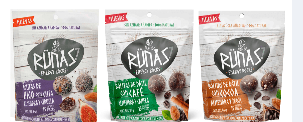 4 paquetes grandes de Runas de 4 sabores diferentes y 6 paquetes chicos 2 de cada sabor .