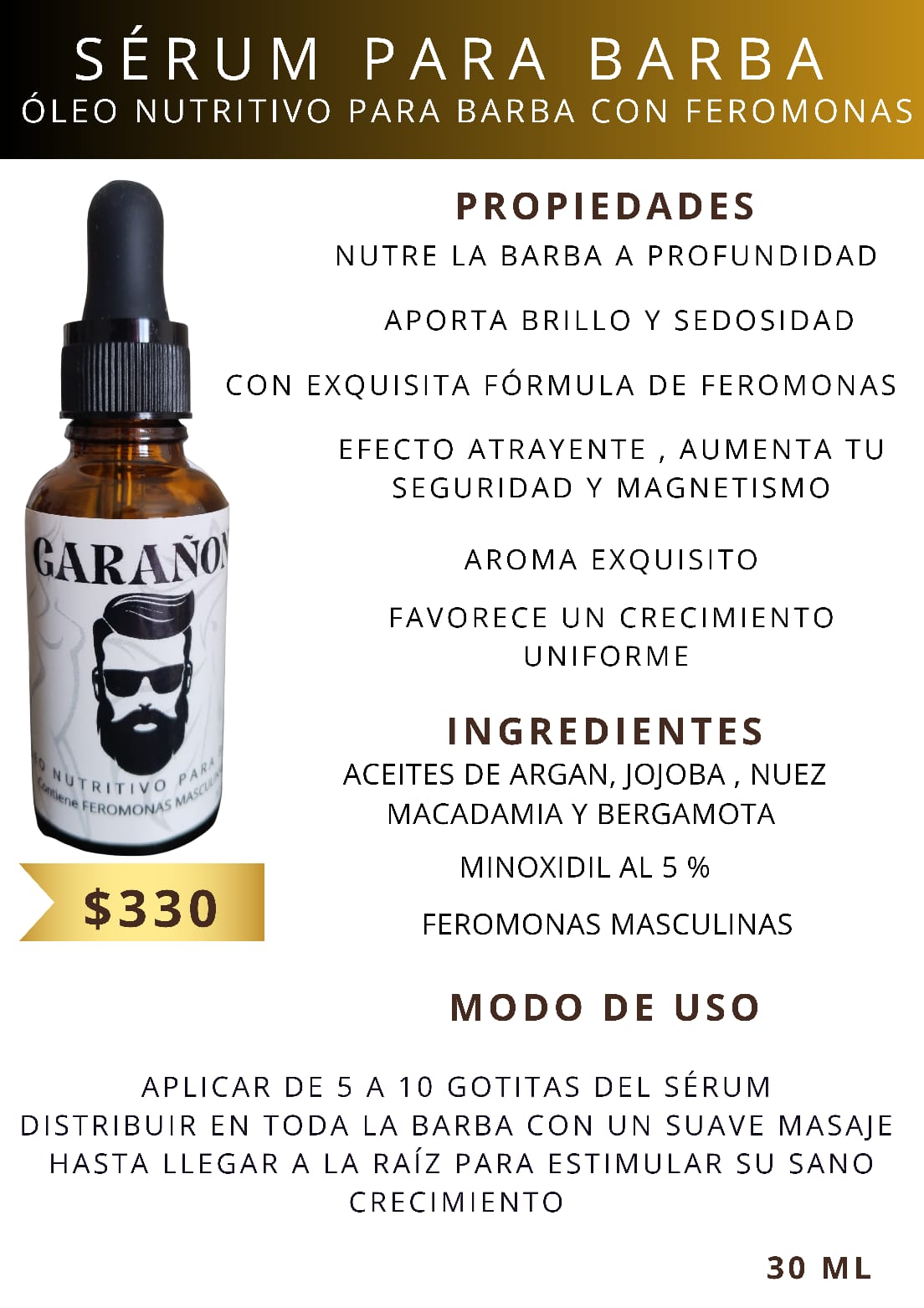 Este sérum combina aceites de argán, jojoba, nuez macadamia y bergamota con feromonas masculinas y minoxidil al 5% para favorecer un crecimiento uniforme, sedoso y saludable.